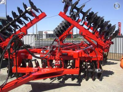 Tatu 7010 GCRO 60 Plate Offset Disc Harrow Specially designed for large acreage farm operations. It is ideal for soil leveling, breaking clods and incorporating soil with crop residue.60 plate, 28" x 7.5 discs, 7.72m working width, 270mm spacing and 1 5/8 shaft size. 330HP req. Standard Features: Tatu SWIVEL oil bath bearing assemblies with tapered roller blade and duo-cone seals Bolt on heavy duty bearing wear plates, heat treated boron steel disc blades, notched front and rear, cast iron spacer spools. Heavy adjustable disc blade scrapers, draw bar jack stand and safety chain.