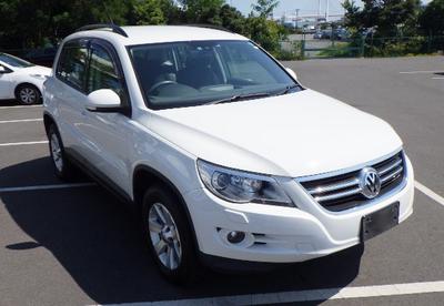 The Volkswagen Tiguan was launched in 2008 as a first compact SUV (Sports Utility Vehicle) of its lineup. The engine is TSI (Turbocharged Stratified Injection) 2.0-Liter in-line-four DOHC (Double Overhead Cam) 170ps/28.6kgm (ABA-5NCAW). The transmission is 6-speed tiptronic AT with drive train full-time Haldex Traction "4MOTION" 4WD (Four Wheel Drive) . Suspensions are MacPherson strut in front and 4-link in rear with stabilizers. Safety devices are dual and side airbags, ABS (Anti-lock Brake System9 with EBD (Electronic Brake Distribution), ESP (Electronic Stabilization Program) and DSR (Driver Steering Recommendation).